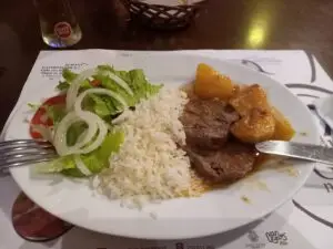 Nagyon finom volt a menü, nagyon jól laktam, ittam hozzá két sört. 9.50 €-ba fog kerülni az étel és még hozzá jönnek a sörök.