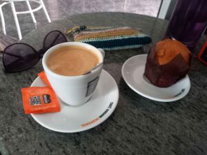 Megálltam egy kávéra, bár a hely nem sokat ígért. De a muffin, amit kaptam, minden várakozásomat felülmúlva nagyon finom. Jól esett. A kávét is fel kellett pimpeltetnem több tejjel, de így szuperjó lett.