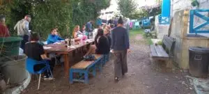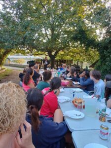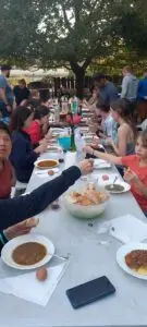Cserébe közösen vacsoráztunk, hogy életben tartsuk a camino hagyományát. Kb. 35en voltunk, 9 országból.